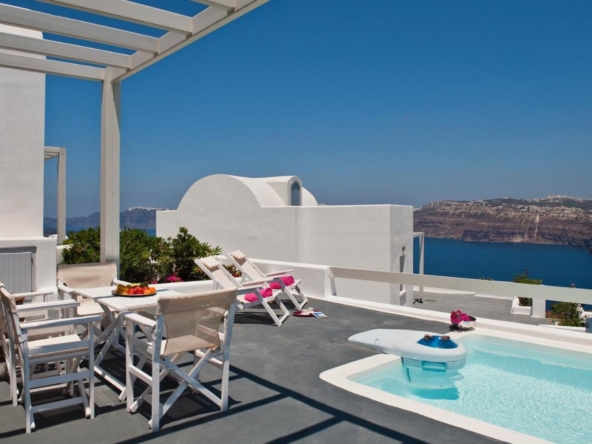 The property is located at the Akrotiri village of Santorini island with a total acreage of 4015,70 m². The unit is built in 2 plots, with total acreage for plot A 2014,06m² and total acreage for plot B 2001,64 m².