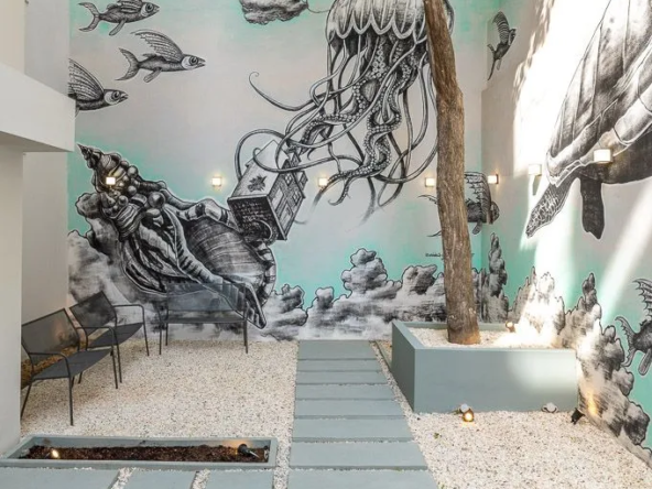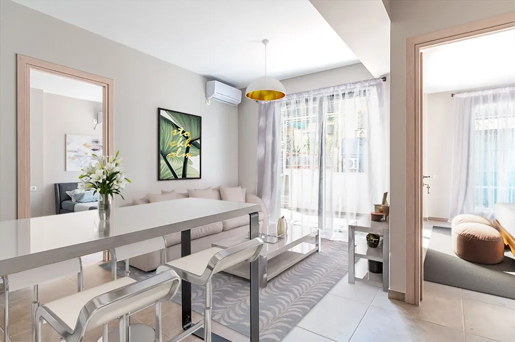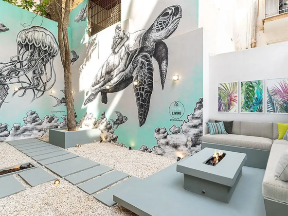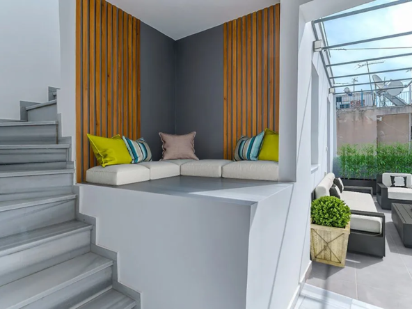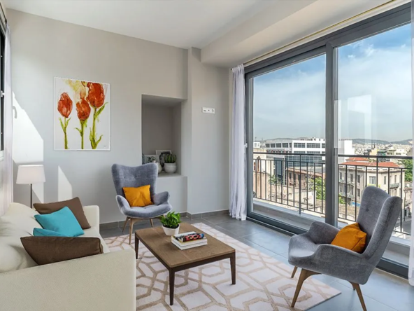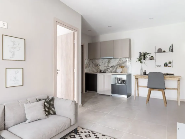 The building is fully equipped with all the modern amenities you could ever dream of, including an elevator, co-working space, a gym, a waterfall bar, and shared laundry facilities. The outdoor garden and roof garden with panoramic views are the perfect spots to relax and soak up the sun.